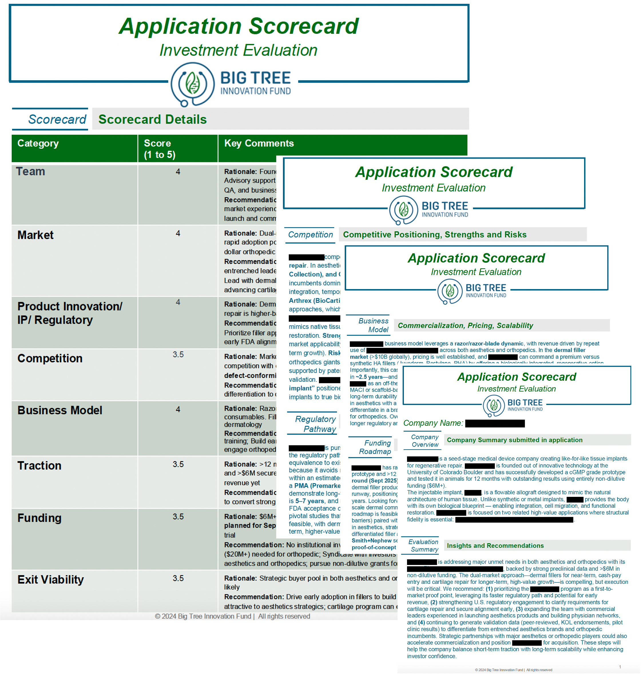 The evaluation scorecard, pitch deck and company overview will be placed in the Big Tree Investor Portal within 45 days after providing the scorecard report by email.